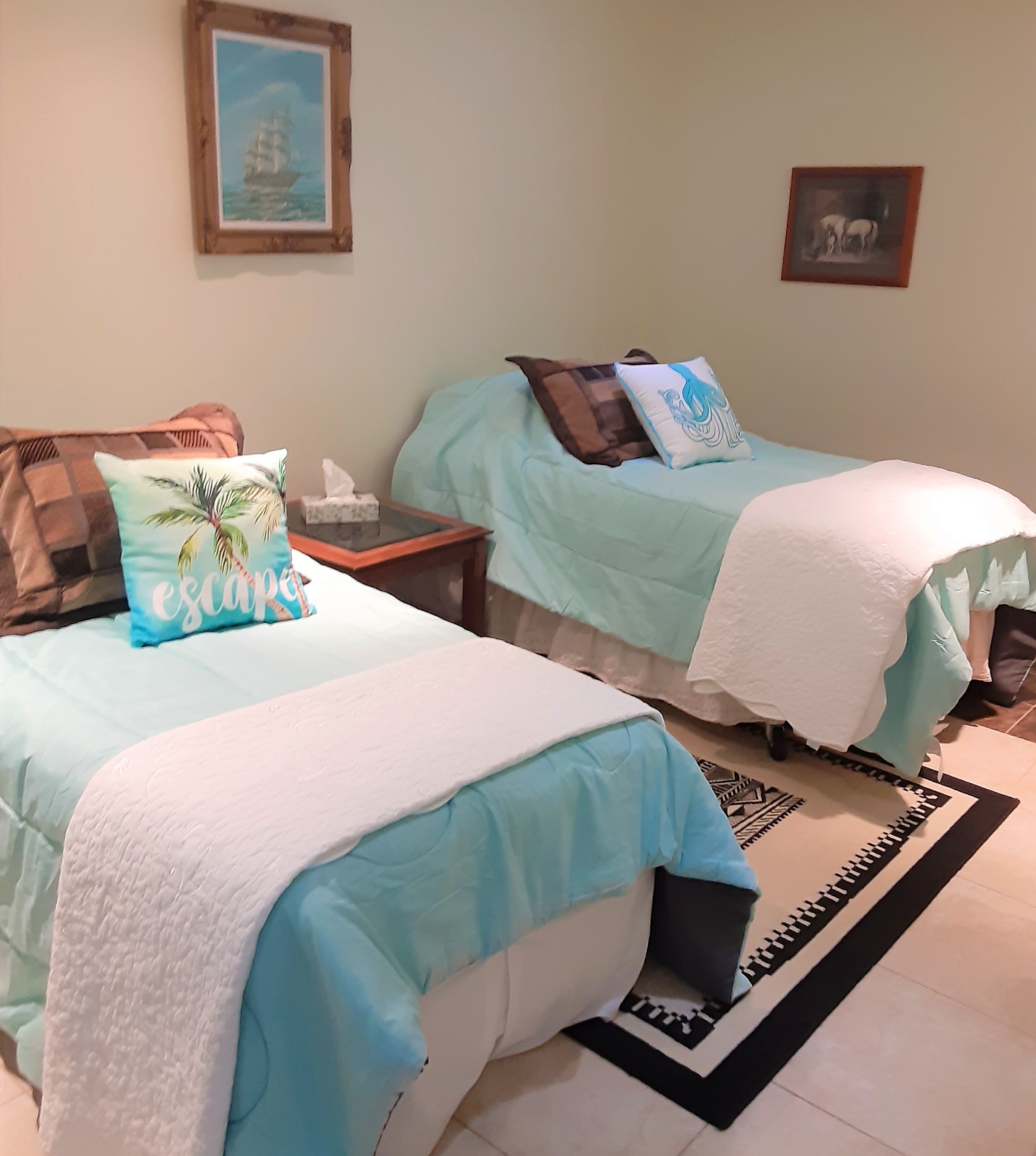 This second bedroom has comfortable twin beds suitable for a second couple,