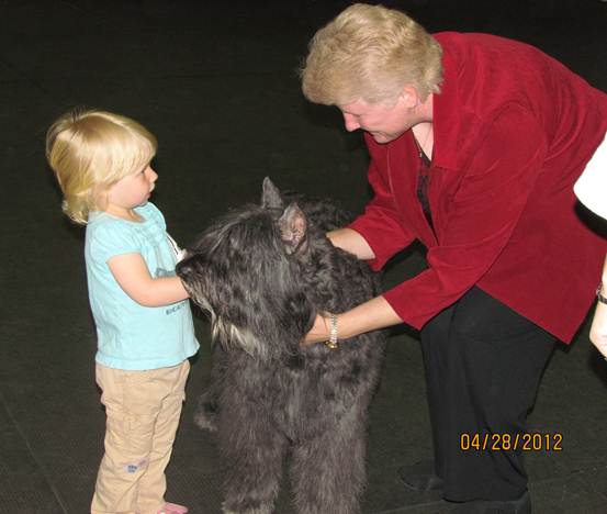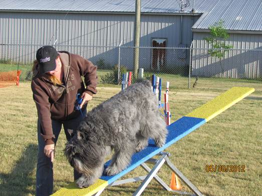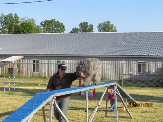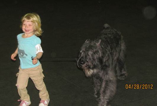 These photos are from a e-mail that Joy-A-Len Kennels has received from Frisco's proud owners, John DiVico from FL. It depicts the kind of family entertainment possible with a fun loving Bouvier. |