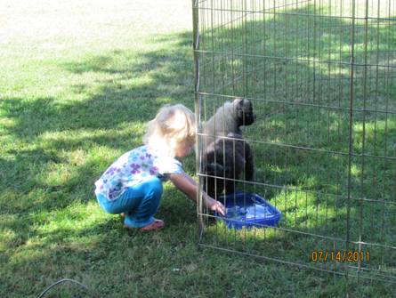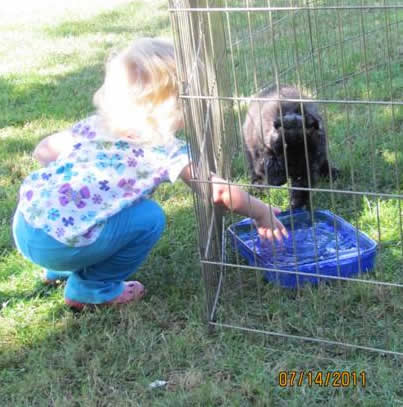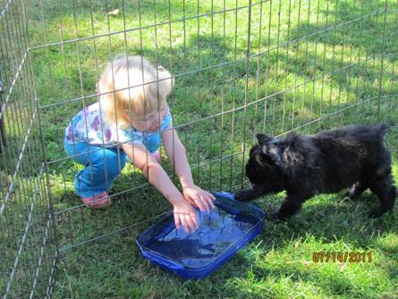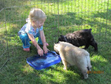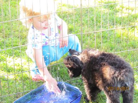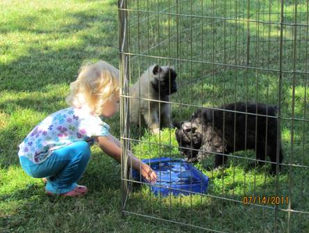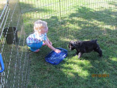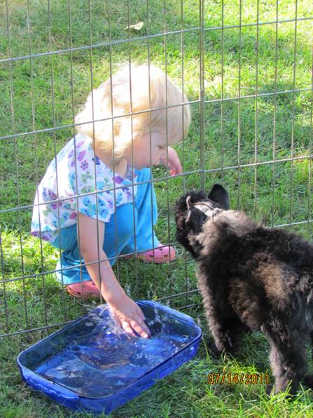 Nicole is showing the puppies how to play in the water to keep cool. |