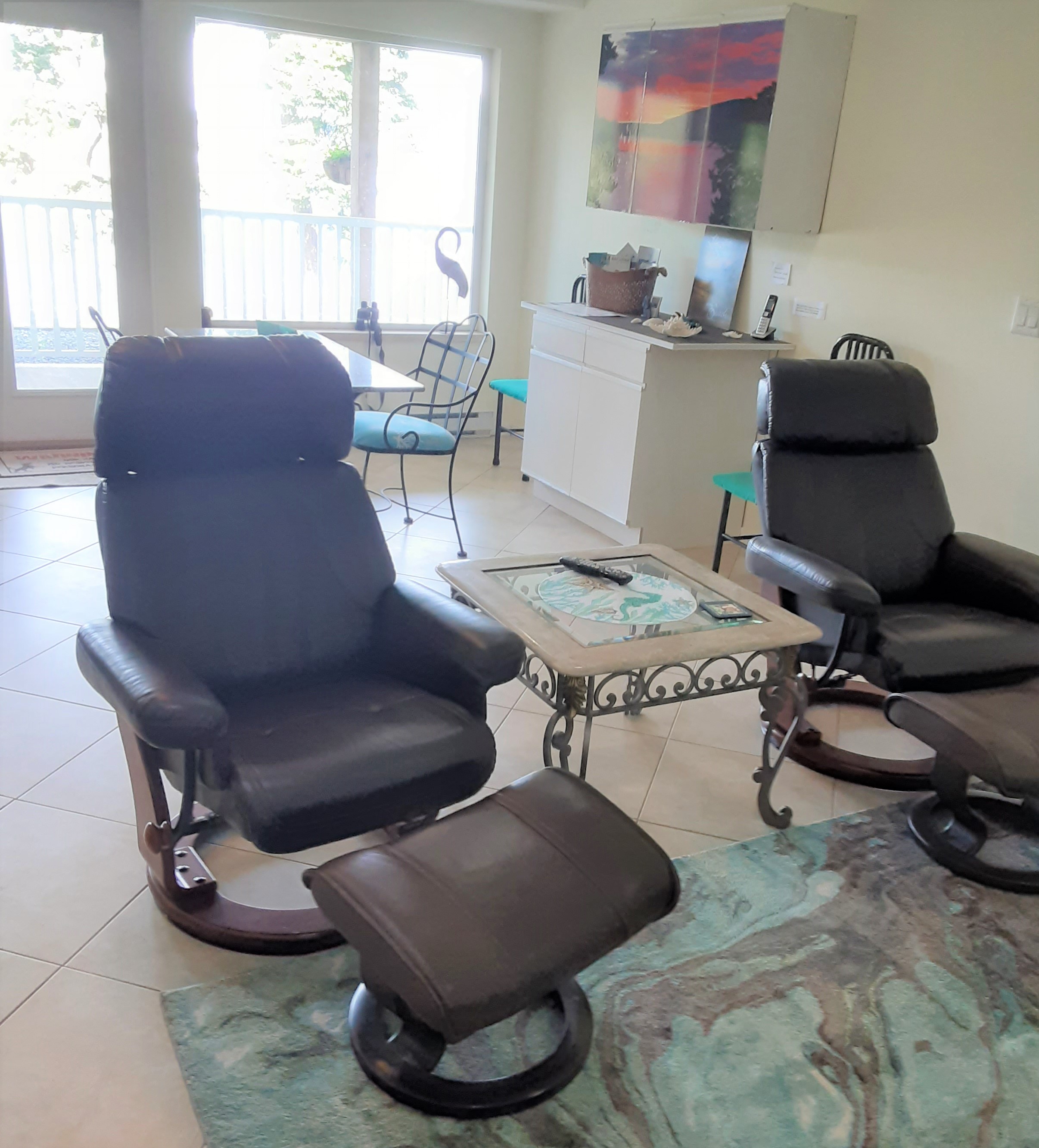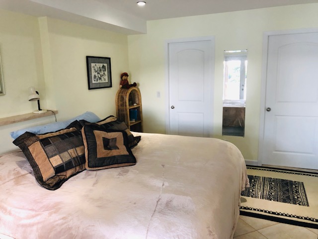 adult children, or mature teens. The bathroom would have to be shared. We do not accommodate toddlers or young children due to our steep hillside, coastal topography, and the fact the owner is an obsessive gardener, and would be upset if her plants were trampled... kids will be kids. There is a large dresser. Clients would share the adjoining family room with large screen TV, microwave, toaster, coffee pot, tea kettle, dishes, cookware, flat electric grill and large bbq on the upper deck. They would have their own entrance. This room is available for $75 a night. |